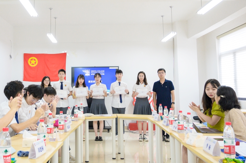 学院党总支副书记张琨,团委书记李杨,辅导员邓媛、刘娇为参与培训的学生干部颁发结业证书。团委书记李杨通报了下学期的工作要点并宣布团委学生会的正式任命通知。