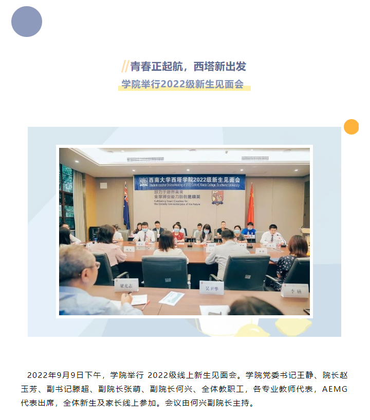 青春正起航,西塔新出发|学院举行2022级新生见面会
