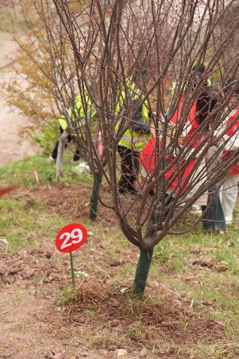 当一颗颗新苗被栽植完毕,活动现场举行了树木认养仪式。各团支部为新栽苗木挂上定制养护牌,写上支部名称,让责任与担当伴随树苗成长。