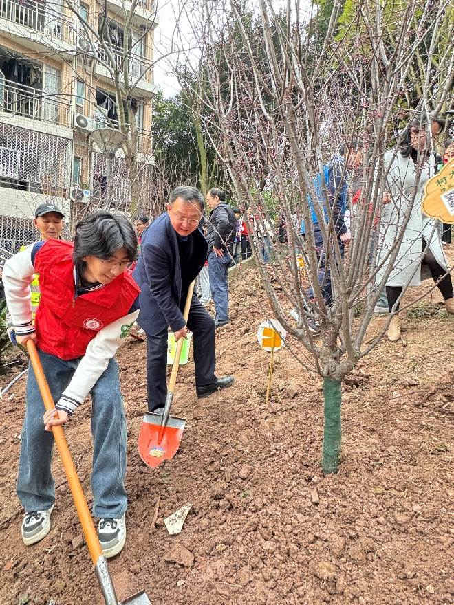 同组的张诗佩深有同感:"作为西塔学子,能为校园美化贡献力量,倍感光荣。"她指着相邻的几棵树苗补充道,"我期待着这些树苗茁壮成长,也盼望着更多同学加入守护校园的行列,让我们的学习环境永远绿意盎然。"