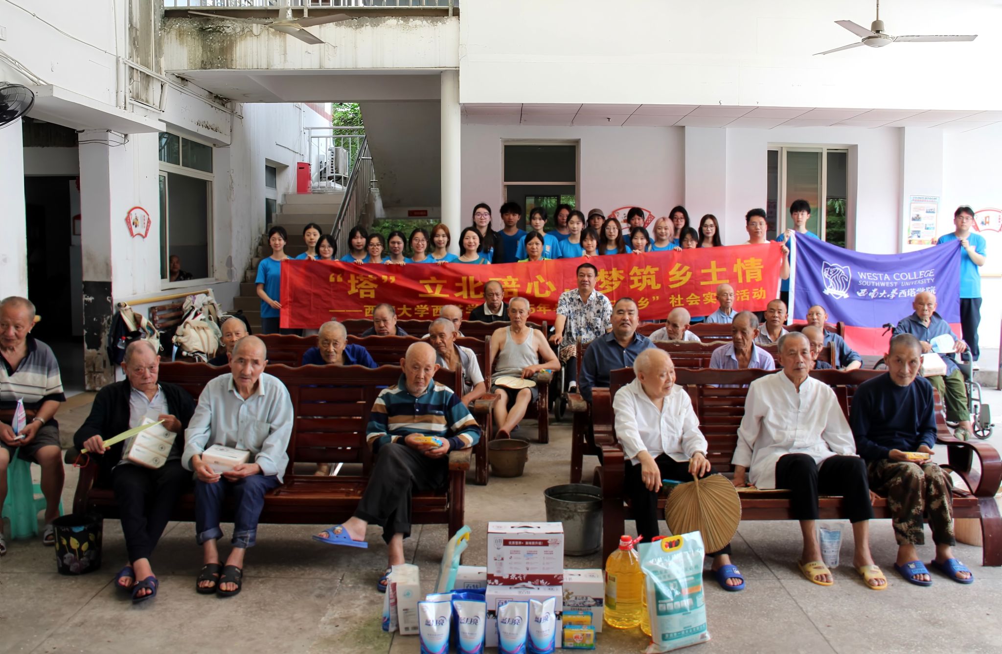 盛夏蝉鸣奏响青春序曲,孝亲敬老传承美德薪火。为了让西塔学子在社会实践中涵养社会责任与敬老情怀,实践团满怀热忱启程,于7月4日下午走进柳荫镇敬老院,用真诚与行动为老人们送去夏日里的暖心关怀。