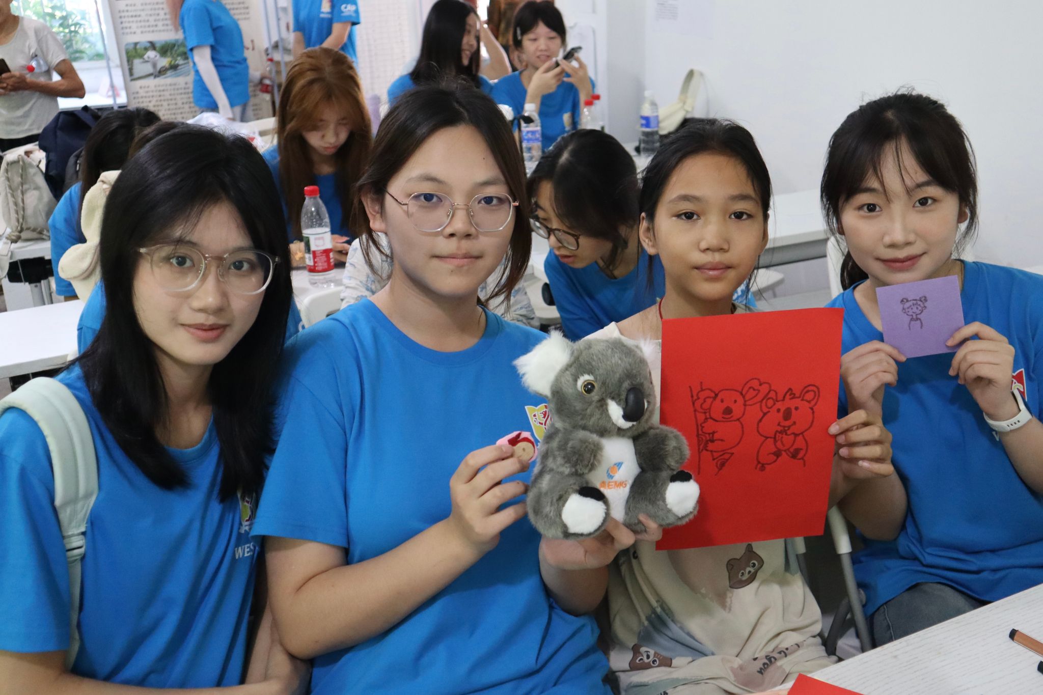 互动体验环节将课程推向高潮。志愿者分发不织布、剪刀、胶棒等材料,鼓励孩子们化身“小小设计师”:有人缝制出圆滚滚的考拉轮廓,有人拼贴出歌剧院剪影,有人将不同材料组合成充满想象力的造型。创作完成后,孩子们举着作品合影,镜头定格下一张张灿烂笑脸,也定格了这场跨越山海的文化对话。