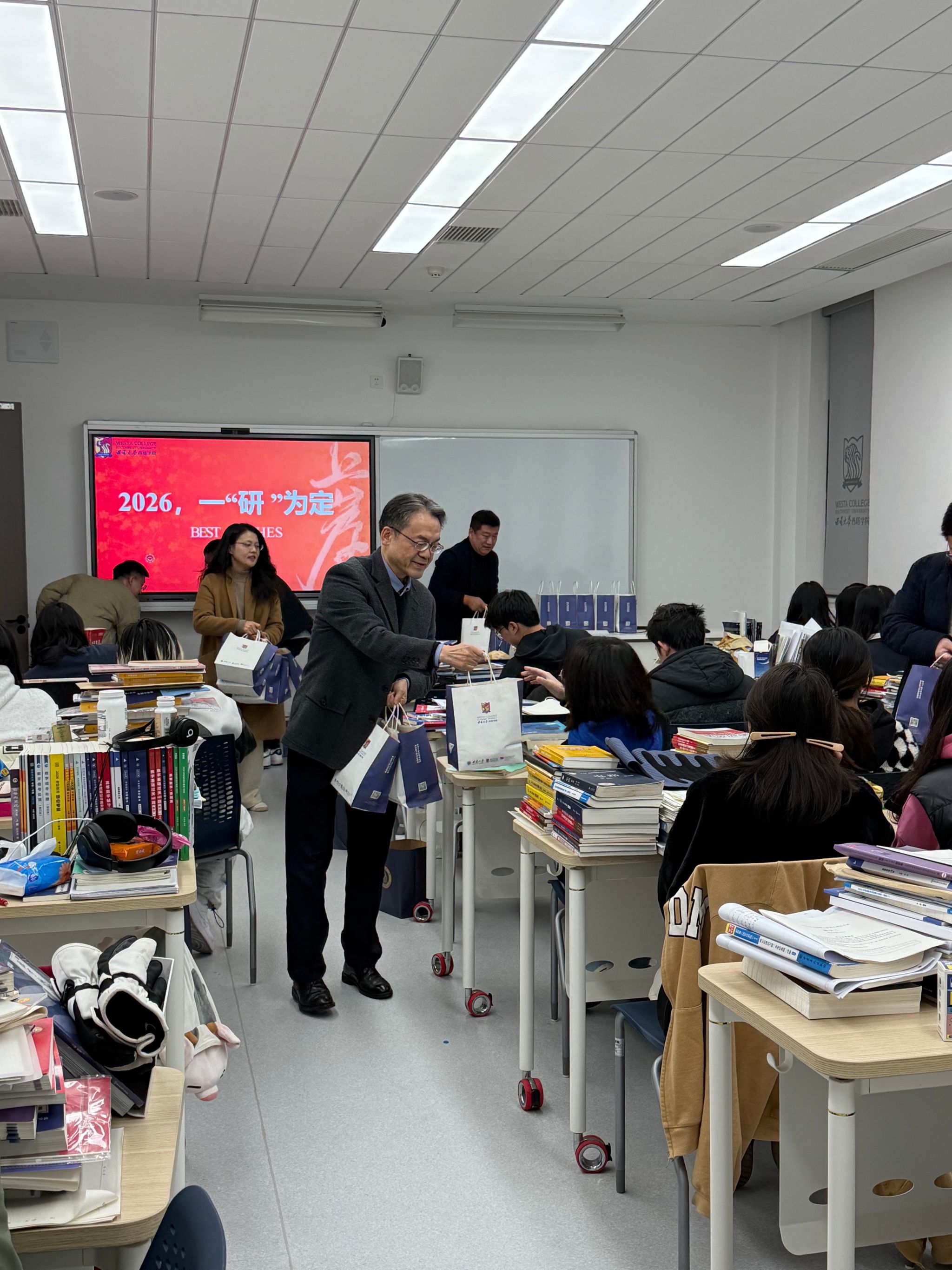 研途送暖,护航上岸。为了缓解同学们备考压力,笃定逐梦恒心,坚定上岸信心,11月27日下午,学院全体领导走进考研自习室,为大家送上暖心关怀和真诚祝福,陪伴大家走好备考的“最后一公里”。