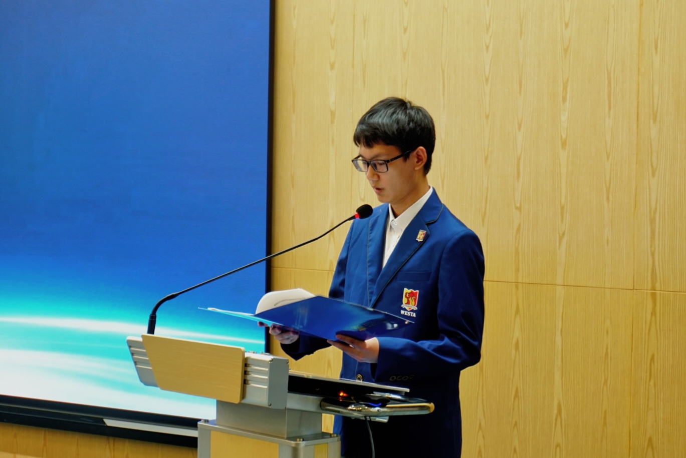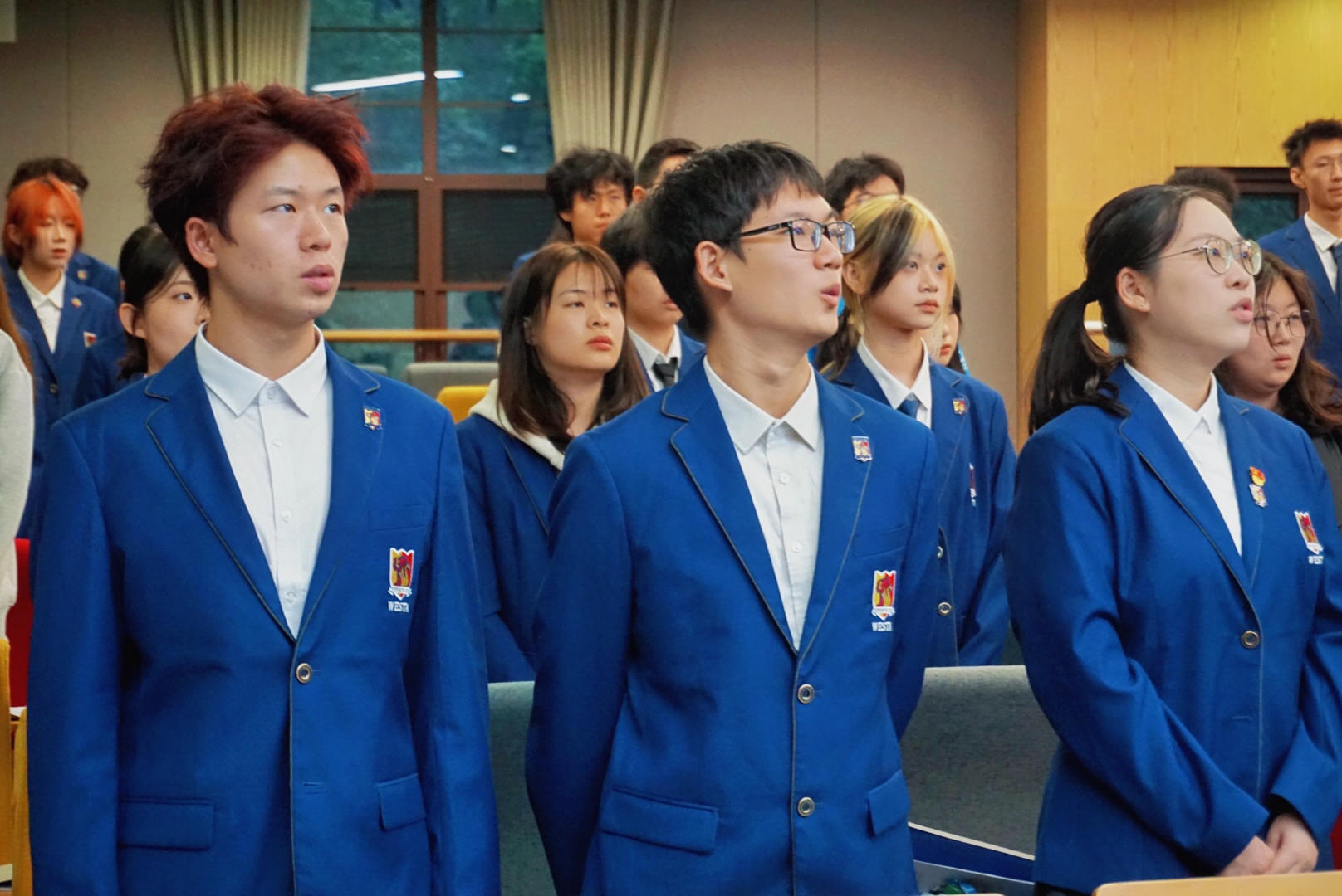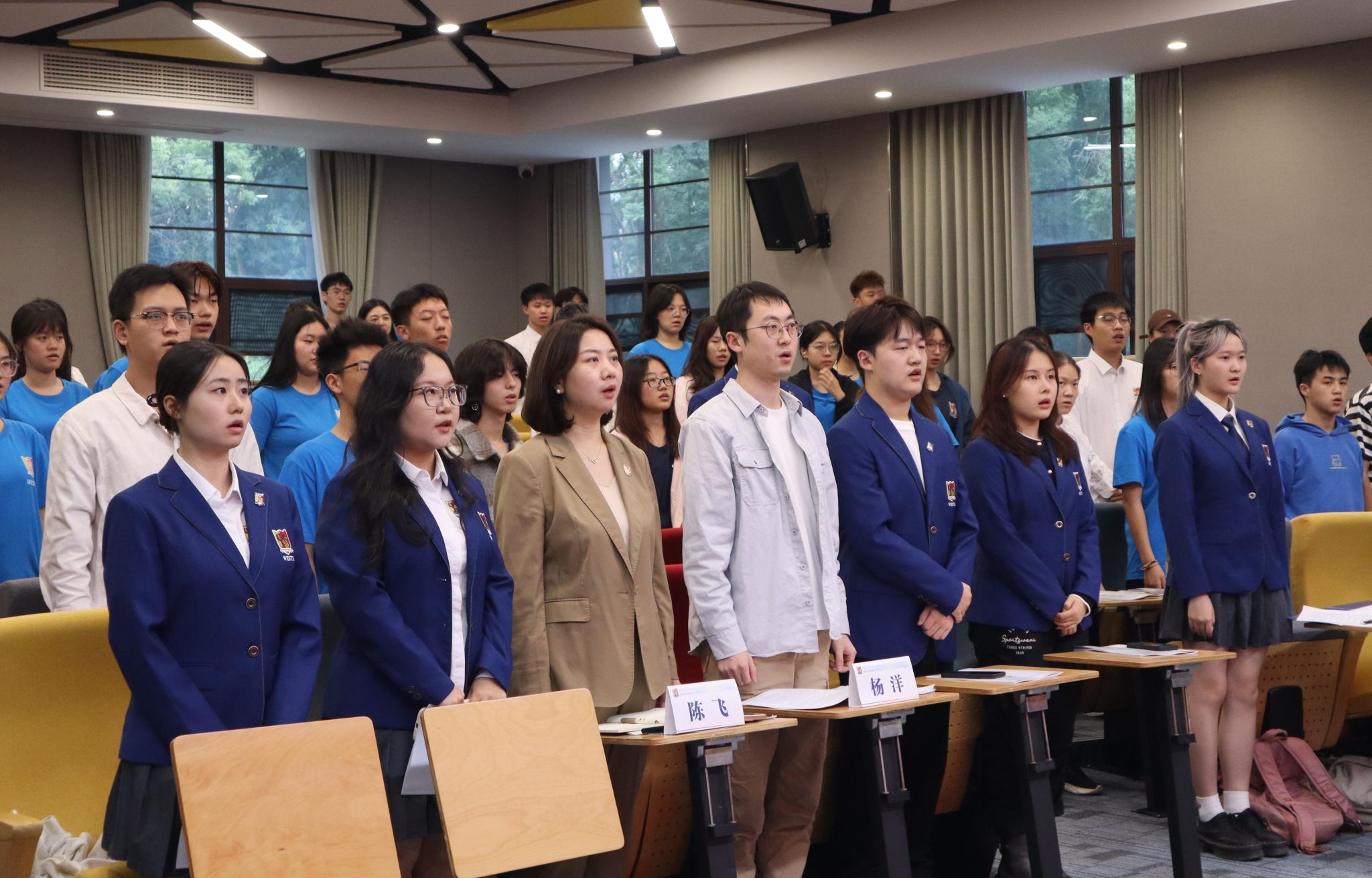 学生代表大会在庄严的国歌声中拉开帷幕。
