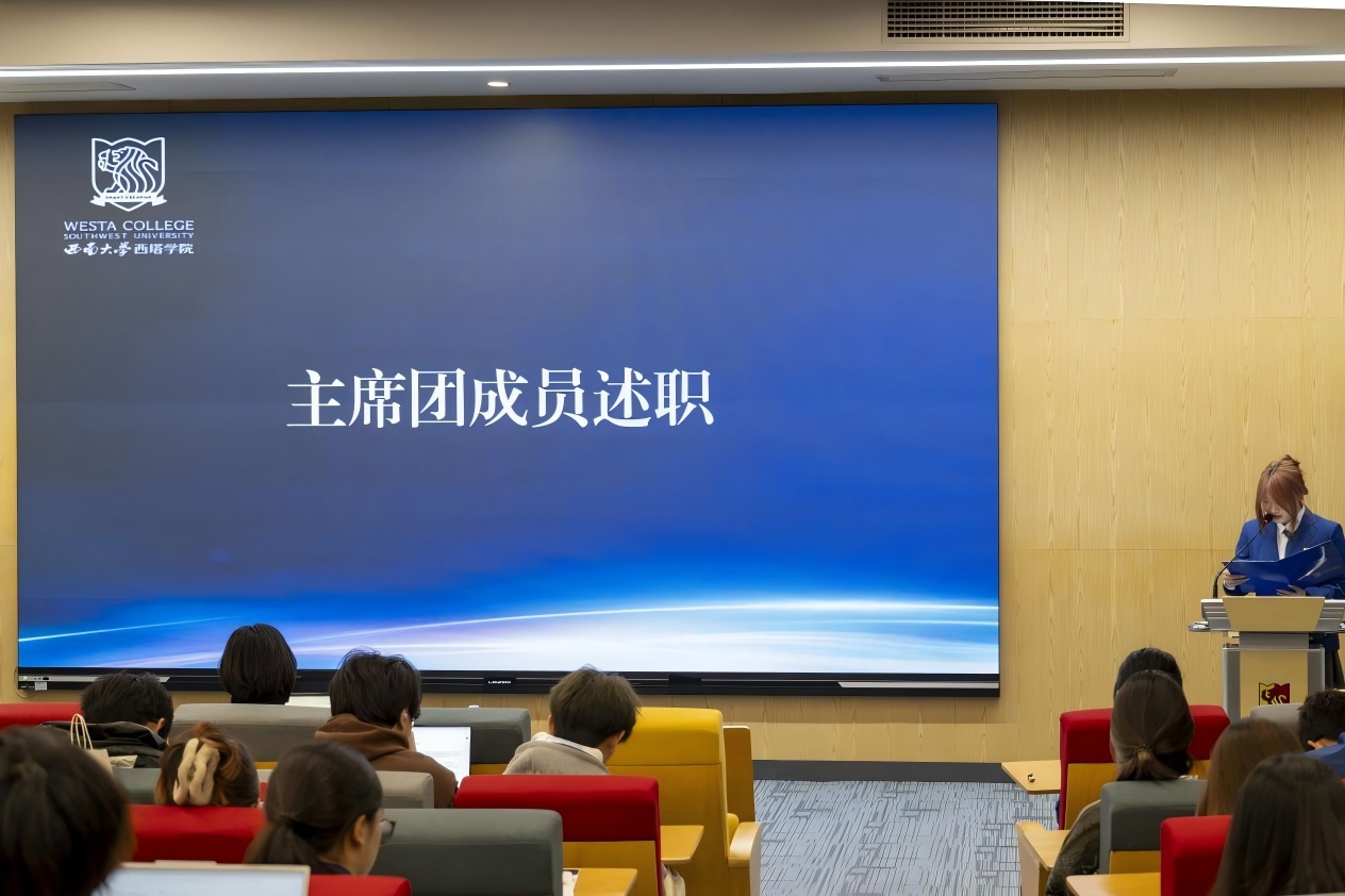 主席团述职环节中,他们围绕各自分管的部门工作,详细汇报了本学期的具体开展情况、取得的成效、存在的不足以及改进思路。主席团成员们深入分析问题根源,提出要注重细节把控、勇于创新思路、加强团队协作,共同助力学生工作迈上新台阶。