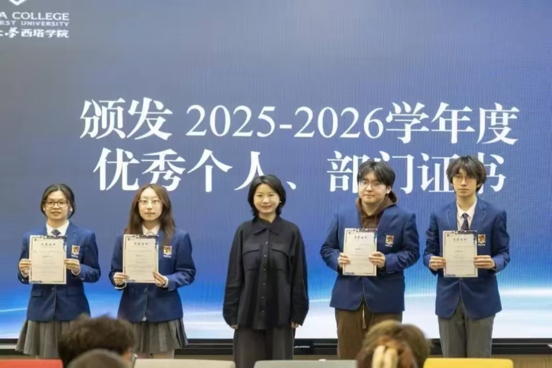 活动伊始,全体成员共同观看了总结视频,回顾了本学期学生活动的精彩瞬间与取得的成绩。紧接着,大会进入颁奖环节,陈飞老师为上一学年度表现突出的优秀部门和个人颁发荣誉证书,以此鼓励大家在后续工作中继续拼搏。
