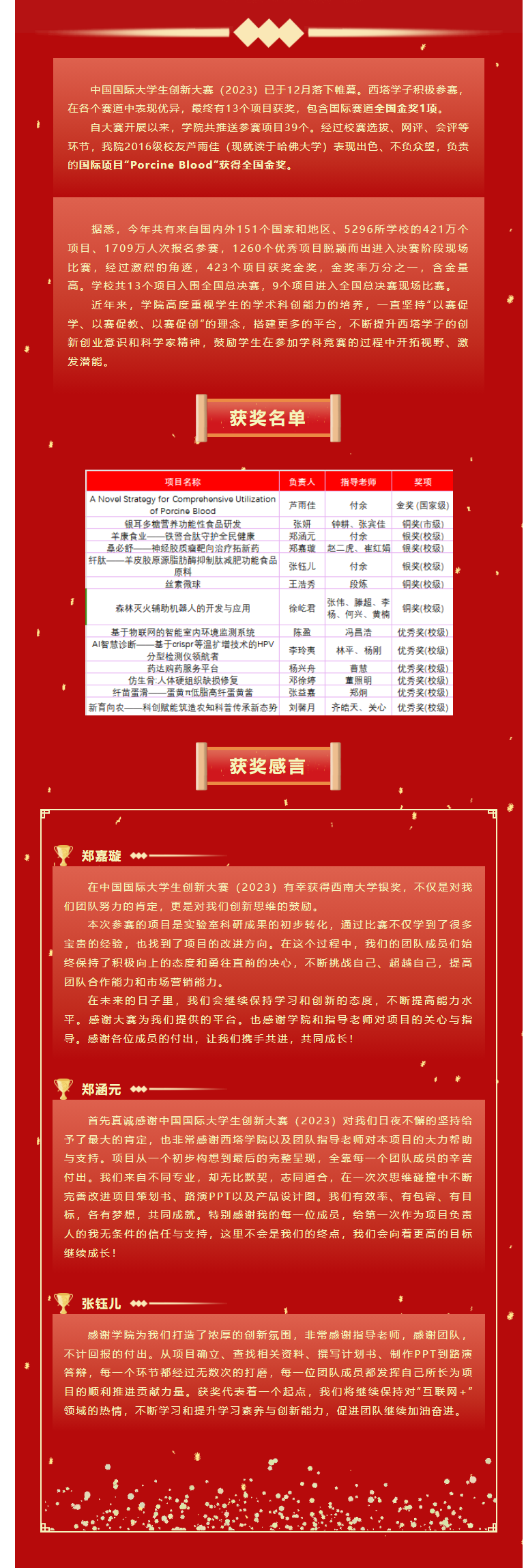 喜报|西塔学子在中国国际大学生创新大赛(2023)中再创佳绩