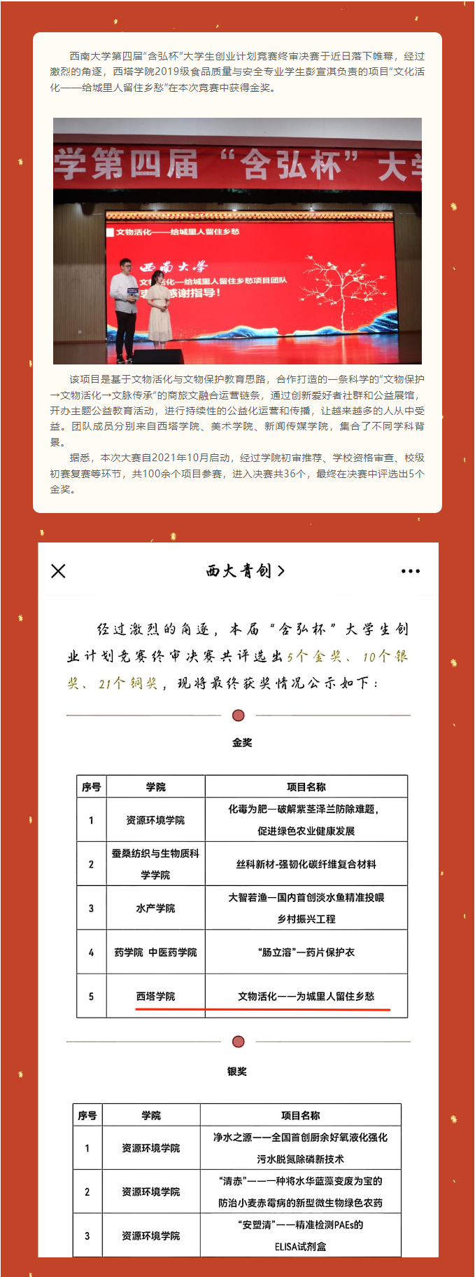 喜报|西塔学子在西南大学第四届“含弘杯”大学生创业计划竞赛中获金奖