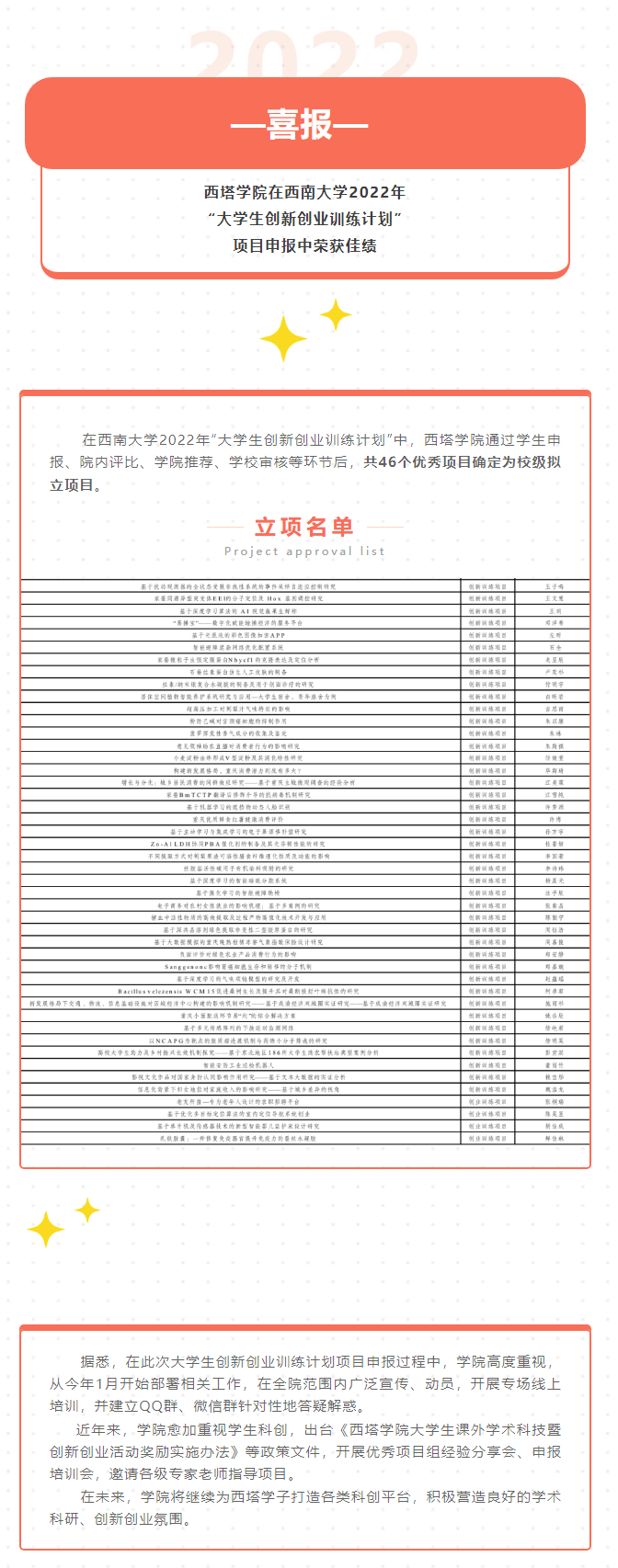 喜报|betway88西汉姆网页在西南大学2022年“大学生创新创业训练计划”项目申报中荣获佳绩