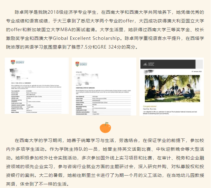 从西塔到世界|我院优秀学子陈卓被澳大利亚国立大学等世界名校录取