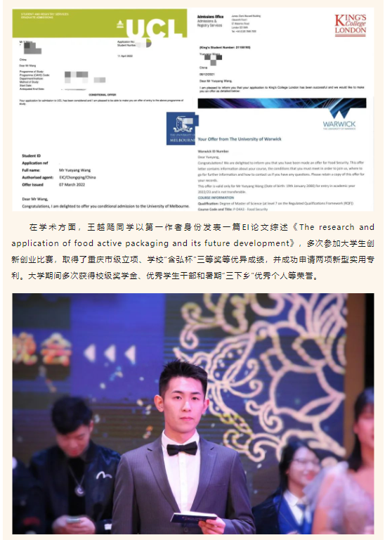 从西塔到世界|我院优秀学子王越飏被伦敦大学学院等世界名校录取