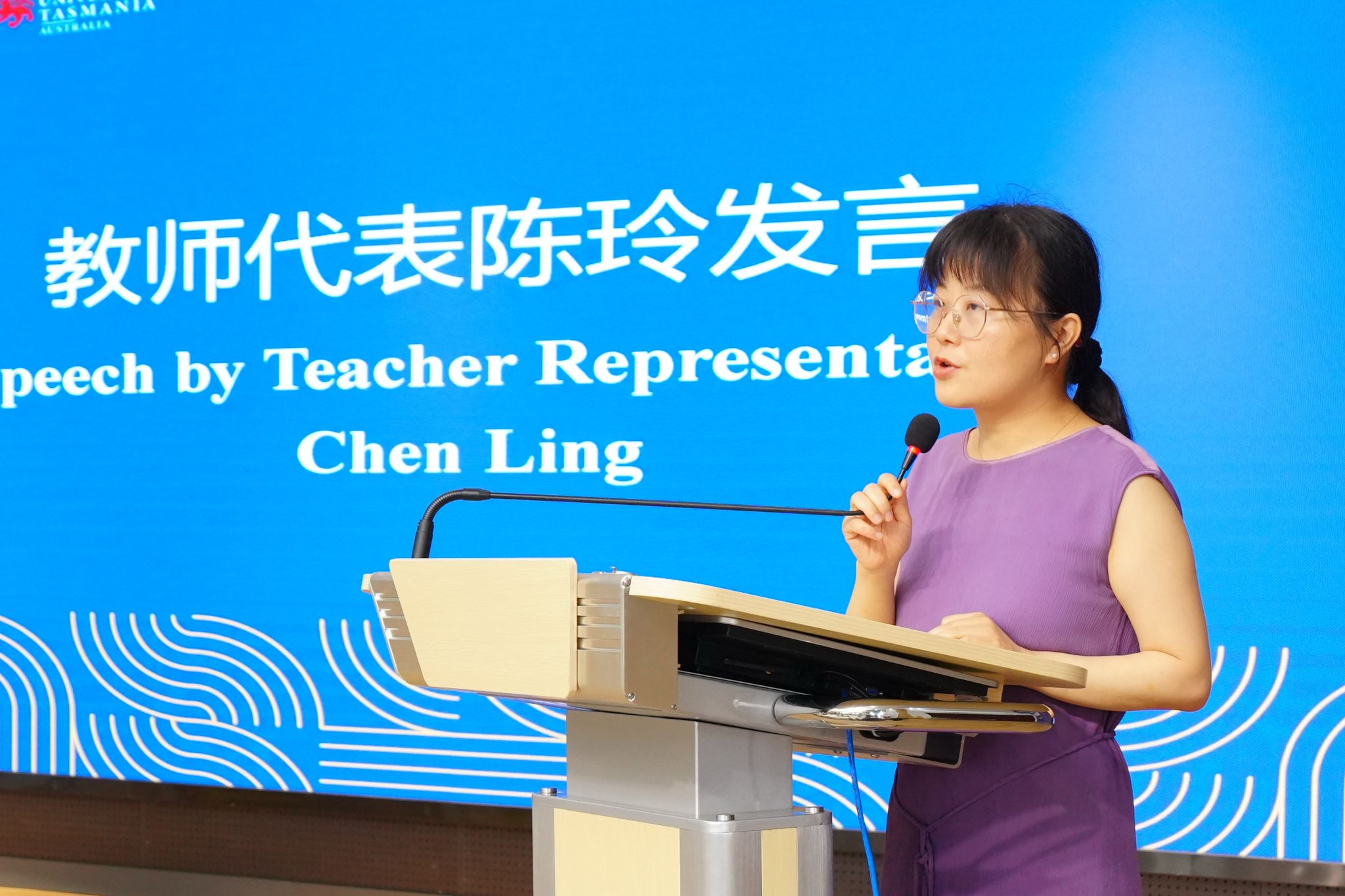 教师代表陈玲老师希望毕业生能够直面挑战,突破自己,追求卓越;独立思考,保持理性和良知,热爱生活,与人为善,奉献社会。