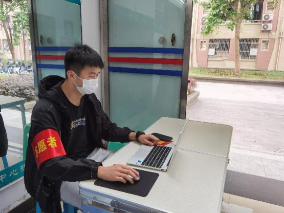 “刚开始的2天,我和老师们、宿管阿姨、各楼层长一起摸排楼栋近千人的信息,确保最精确的住宿信息台账,为后续精准防控做足准备。”他一边沉着地说着一边在电脑上继续整理着数据。兼任核酸检测秩序维护志愿者时,每一位同学“不漏检”是他的最重要的工作职责,每天都会花4个小时左右。由于大部分课余时间都投入了疫情防控工作,在课堂时间他更加专注认真,利用课堂的每一分钟。如果出现冲突,学长学姐和同学们也会把课堂笔记借给他参考。坐在门口值班时,也会拿出随身携带的课本与手机复习网课,坚定又认真的身影让人感动。