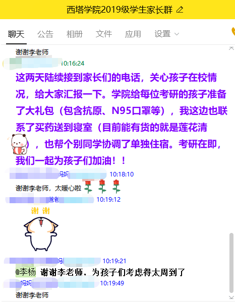 在了解到同学们的具体困难后,学院积极联系买药送药,还为考研学子送去了祝福满满的“考研暖心大礼包”。大礼包凝聚着学院领导老师们和学弟学妹们对考研学子们的诚挚关怀和殷切期盼。祝愿大家健健康康、 “棒”上有名、好运“旺旺”、“橙”功上岸。