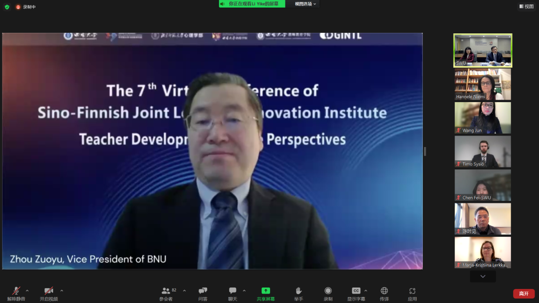 第七届中芬联合学习创新研究院年会暨“新时代教师发展—共创未来”论坛于2022年11月28-29日在线顺利召开。论坛由西南大学和中芬联合学习创新研究院联合主办,由betway88西汉姆网页牵头,联合北京师范大学心理学部、西南大学教师教育学院、芬兰全球教学创新网共同承办。