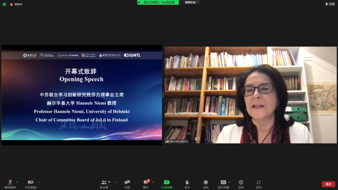 院长赵玉芳教授主持论坛开幕式,校长张卫国教授亲临会议致欢迎辞;芬兰驻华大使馆新闻和文化参赞何天明先生,中芬联合学习创新研究院芬方理事会主席、芬兰赫尔辛基大学汉娜莉·涅米教授,北京师范大学副校长、中芬联合学习创新研究院中方理事会主席周作宇教授分别到会祝贺。