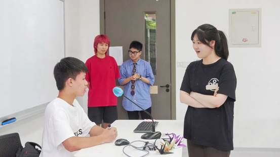 2019级学生王地、陈俪宁、林宜新及2021级学生吴宇辉、胡锦羽共同演绎了自主编导的红色青春剧场“在青春赛道上奋力跑出当代青年的最好成绩”。剧中预备党员小地同学与差生小吴同学互相帮助、彼此成就,最终实现自我价值。同学们的生动表演引得场下掌声、笑声交互不断,现场反响热烈,并引发激烈讨论。