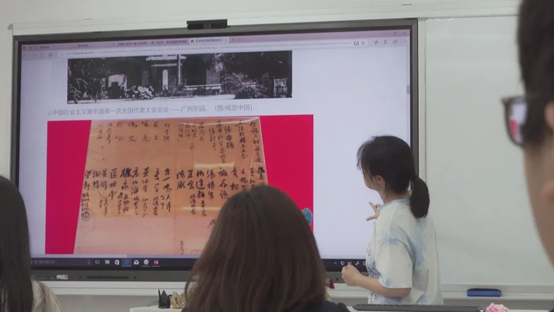 现场师生还一同观看了庆祝中国共产主义共青团成立100周年官方宣传片MV《有我》。片中回顾了中国共产主义青年团百年来的发展历程,代代中国青年不负时代重托,为党的百年伟业而奋斗。一代代青年满怀赤诚、薪火相传的故事引发全体师生深刻思考,并在庄重氛围中一同许下“请党放心,强国有我”的誓言。