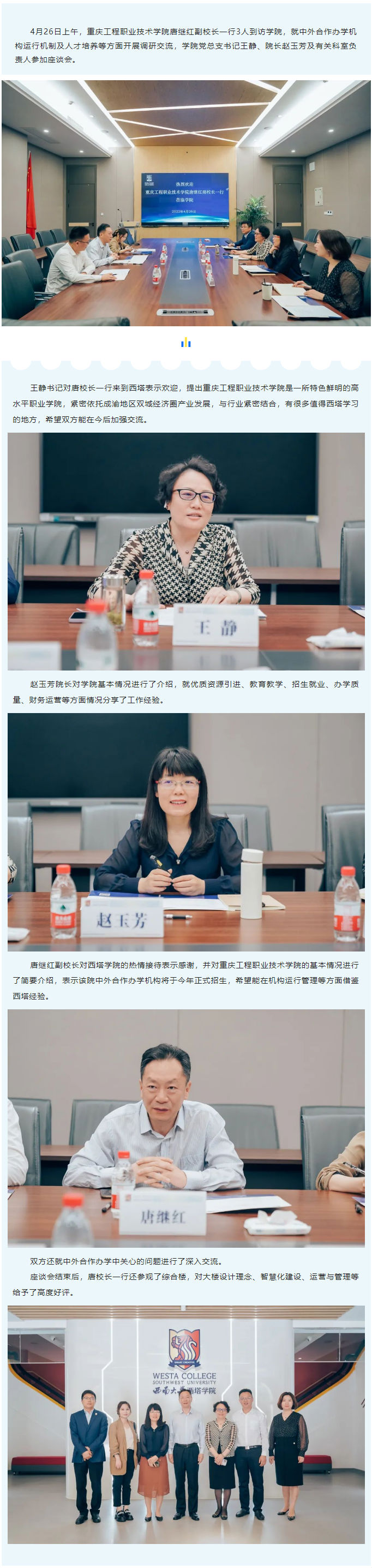 重庆工程职业技术学院唐继红副校长一行到学院调研交流