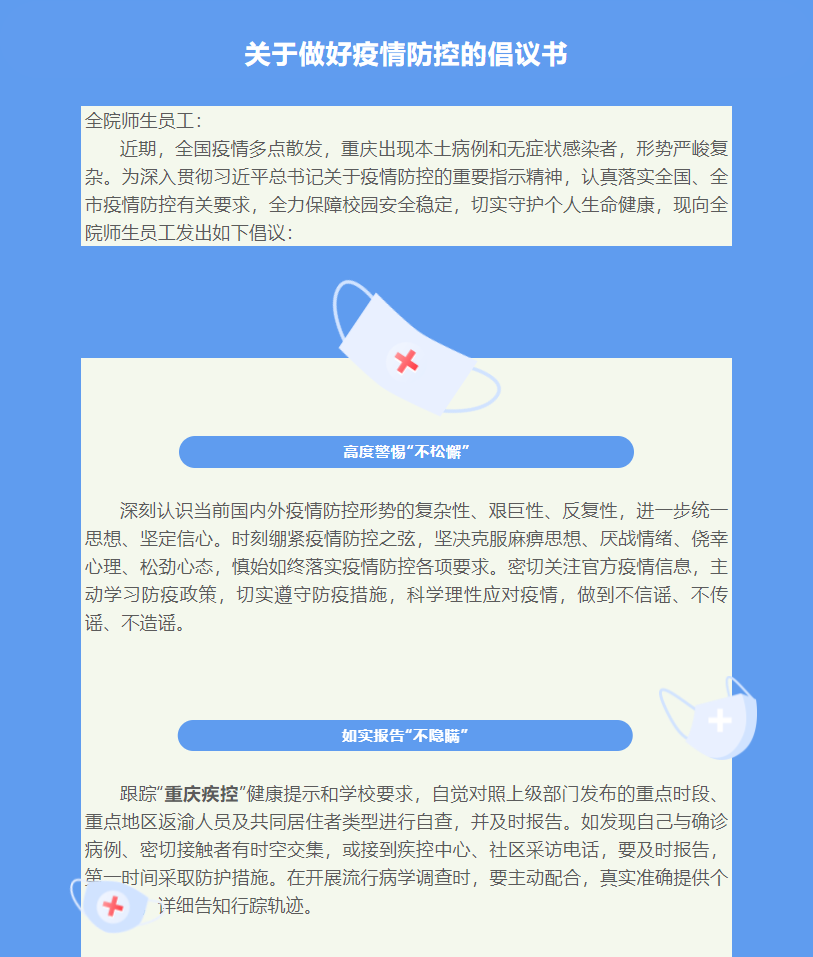 关于做好疫情防控的倡议书