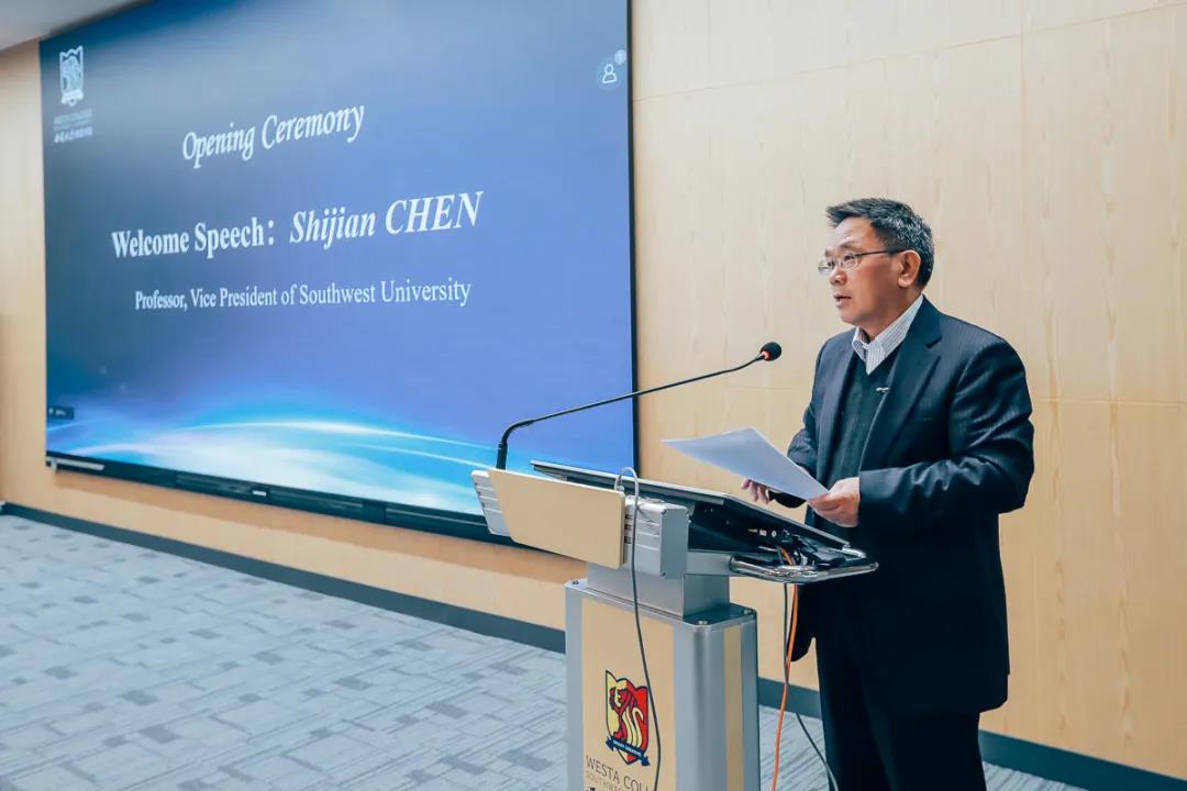 西南大学副校长陈时见教授在开幕式中致辞,他站在全球化背景和我国坚持教育对外开放的角度,以自身留学和教育研究经历出发,分享了他对跨文化交流与个人成长的见解。他表示学校历来重视国际化人才培养工作,肯定了betway88西汉姆网页在跨文化学习与发展实践中发挥的重要作用,希望与会专家学者能够深入交流研讨,共同推动中外合作办学质量提升。