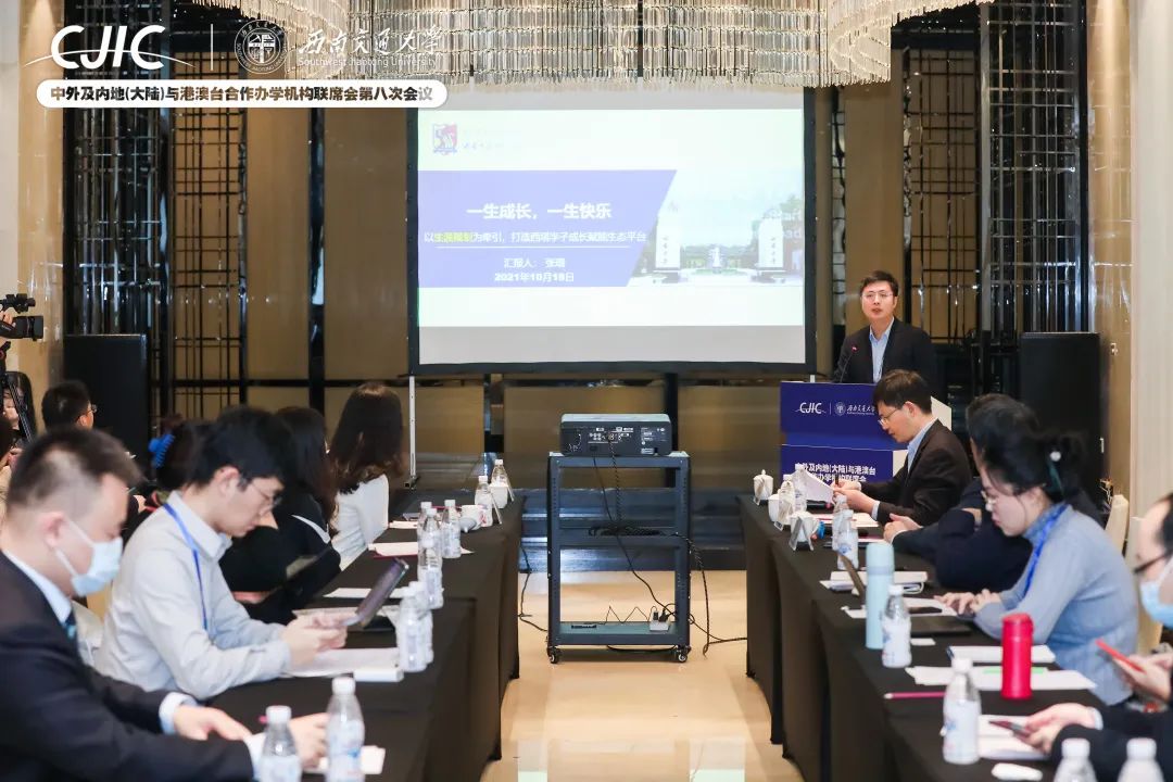 18日下午,张琨副书记代表学院参加“中外合作办学就业与深造暨西南地区第二届中外合作办学就业与深造工作研讨会”分论坛,并受邀作“一生成长,一生快乐——以生涯规划为牵引,打造西塔学子成长赋能生态平台”主题分享。他围绕建设背景、价值内核:成长、主题牵引:《betway88西汉姆网页学生学业生涯规划方案》、路径牵引:“成长记录袋“、活动牵引:”三位一体“系列活动、组织牵引:西塔成长俱乐部、外部牵引:企业参与等方面与各高校代表开展交流讨论,探索新时代实现高水平中外合作办学发展的可行路径,现场氛围热烈。