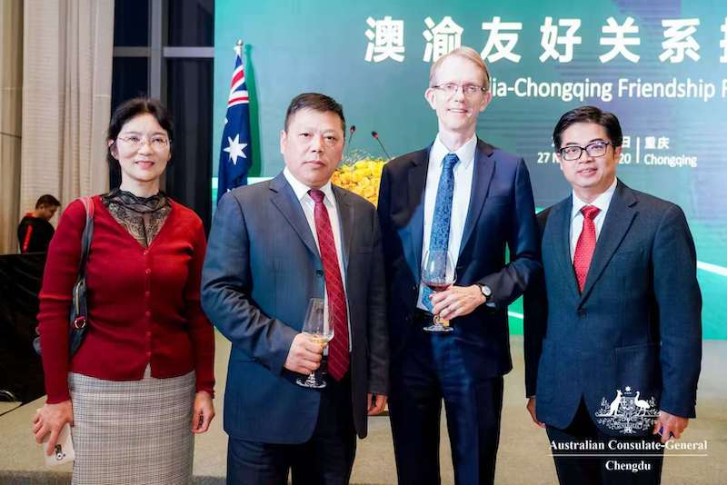 11月27日晚,澳渝友好关系招待会在重庆国金中心举行,澳大利亚驻中华人民共和国大使 Graham Fletcher 阁下出席招待会。校长张卫国教授、国际处张发钧处长及betway88西汉姆网页副院长张萌参会。重庆市政府外事相关部门、各界代表参会,共同展望新时期澳渝关系美好发展前景。