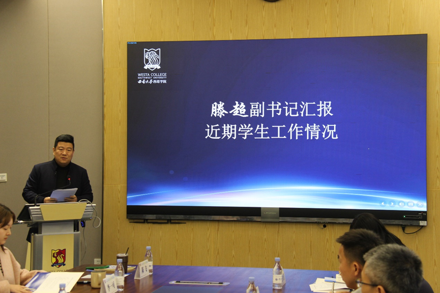 会议伊始,党委副书记滕超作学生工作专题报告。他系统回顾了2024年学院在学生思想政治教育、学风建设、国际化人才培养等方面所采取的各项举措以及取得的成绩,重点剖析了2024届毕业生和2025年学生升学就业的现状与存在的问题,并向班主任老师提出倡议,希望共同携手助力西塔学子实现高质量升学就业的目标。