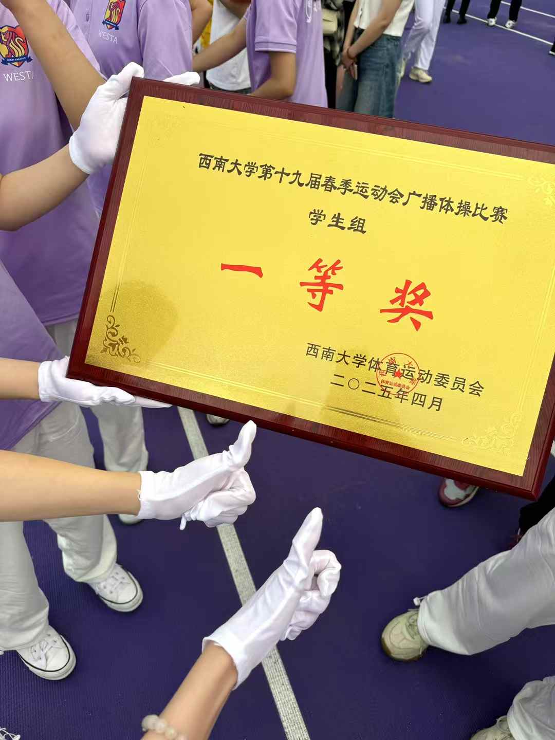 凭借着团结一心、奋勇拼搏的精神,西塔学子在广播操比赛中脱颖而出,一举夺得“一等奖”的佳绩。随着颁奖典礼上欢呼声响起,汗水与荣耀交织在一起,拼搏的精神与深厚的友谊在每一位西塔学子心中深深扎根。