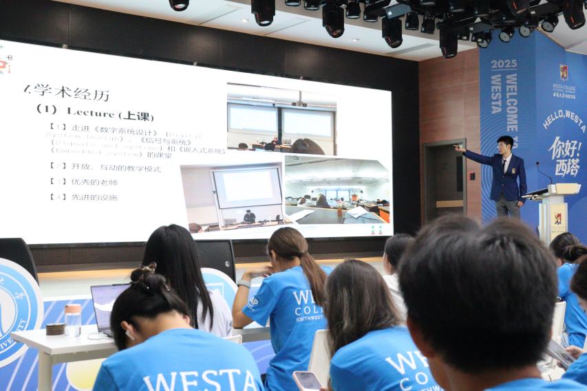 高年级学长学姐们以2025年暑期访学经验分享为题,图文并茂地展示了澳方大学的校园生活,从学术科研、文化体验等方面介绍在澳方大学的访学收获,为新生提供了国际交流参考,现场互动积极,反响热烈。