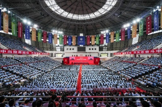9月8日上午,新生齐聚校园开启新征程,参加了学校2025级本科生开学典礼暨“开学第一课”。校党委书记张卫国为新生代表佩戴校徽,送出最美好的祝福。校长王进军寄语新生以家国大义校准航向、以传统文化涵养担当、以拼搏实干书写华章。典礼后,张卫国书记以“铭记抗战历史,奋斗激扬青春”为题讲授第一课,回顾校史与抗战记忆,勉励新生立大志、成大才。新生备受鼓舞、受益匪浅,纷纷表示将来要潜心向学、主动探索。