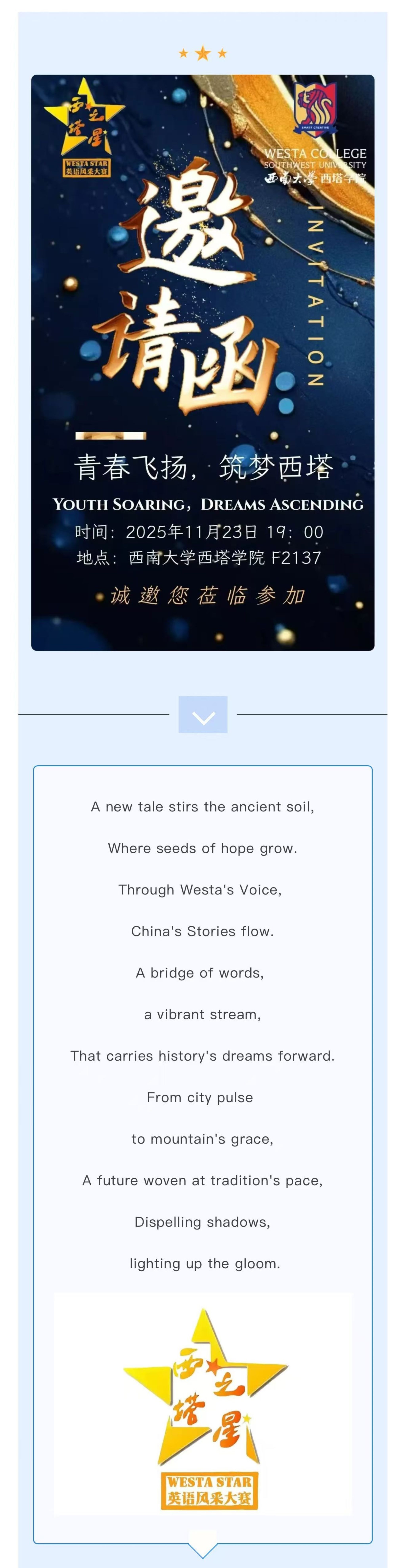 betway88西汉姆网页2025年“青春飞扬,筑梦西塔”英语风采大赛(决赛)邀请函