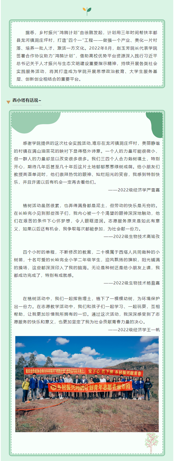 植树添新绿,树人护成长|学院师生赴丰都开展社会实践服务活动