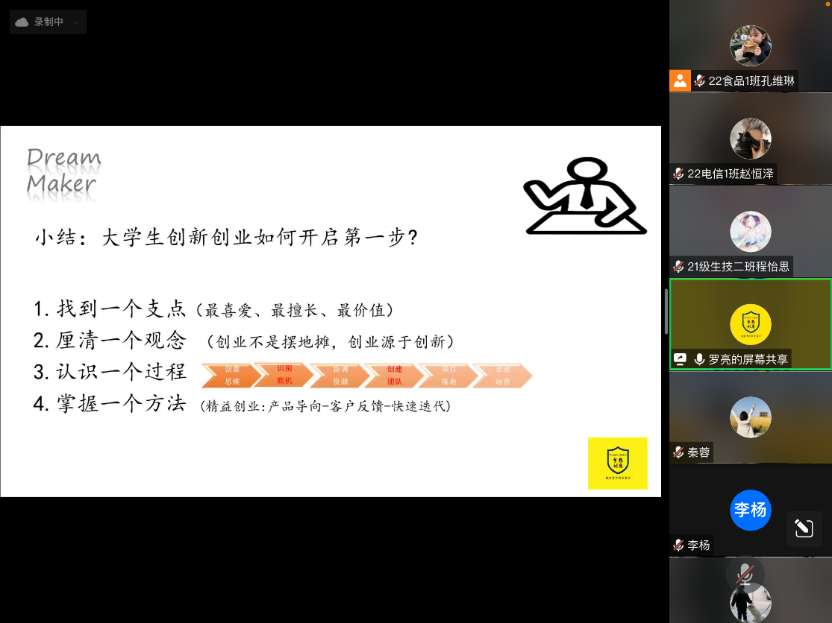 他讲到,在当今的科教兴国、人才强国、创新驱动发展的战略背景下,青年人应当如习近平总书记所强调:“开辟发展新领域新赛道,不断塑造发展新动能新优势。”他还向大家介绍了目前我国创新创业的相关政策以及各类创新创业大赛,如“挑战杯”中国大学生创业计划竞赛、“互联网+”大学生创业创新大赛以及西南大学 “含弘杯”大学生创业计划竞赛等。同学们在线上积极与罗老师互动,氛围融洽,创新创业意识不断增强。