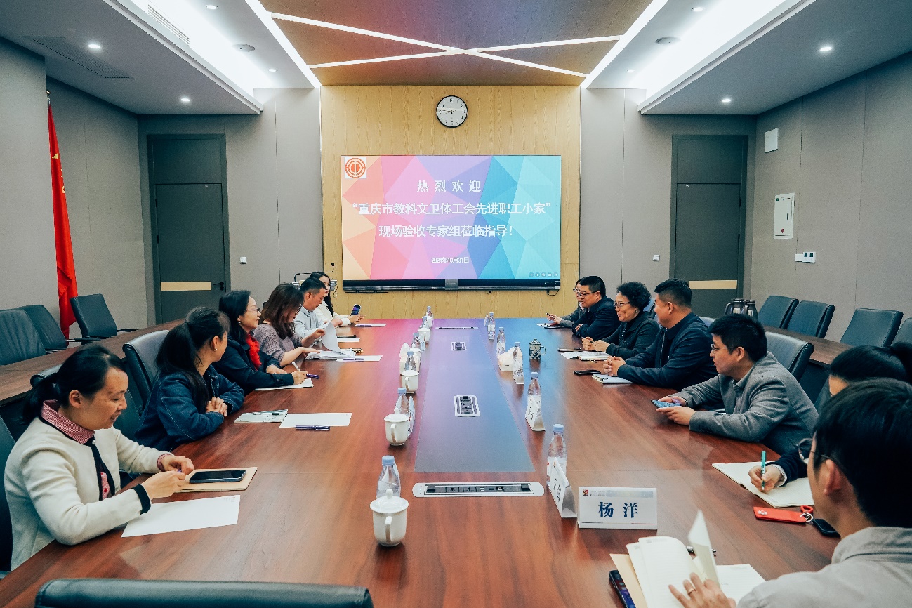 10月31日上午,重庆市教科文卫体工会二级调研员刘春艳带领专家组一行6人莅临学院开展重庆市教科文卫体工会“先进职工小家”现场验收。学院党委书记王静率在家班子成员及工会委员参加了此次验收工作。