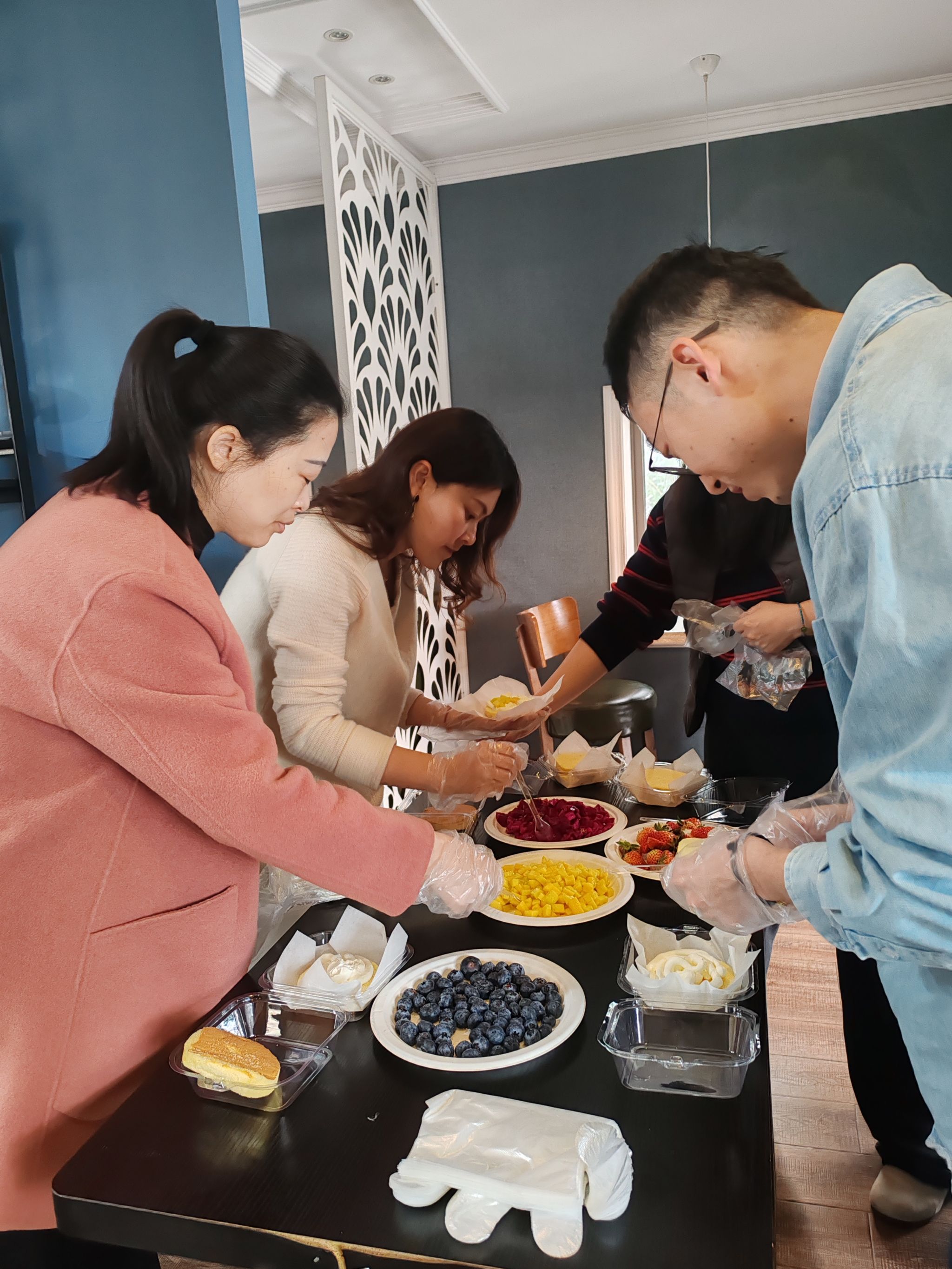 随后,刘猛书记和滕超副书记还带领全体男同事向女同事门献上了娇艳芬芳的鲜花!现场还准备了蛋糕DIY和咖啡手冲体验活动,大家一边发挥创意,一边闲话家常,一件件充满创意和爱心的DIY蛋糕和咖啡拉花作品也随之诞生,活动现场充满了欢声笑语。