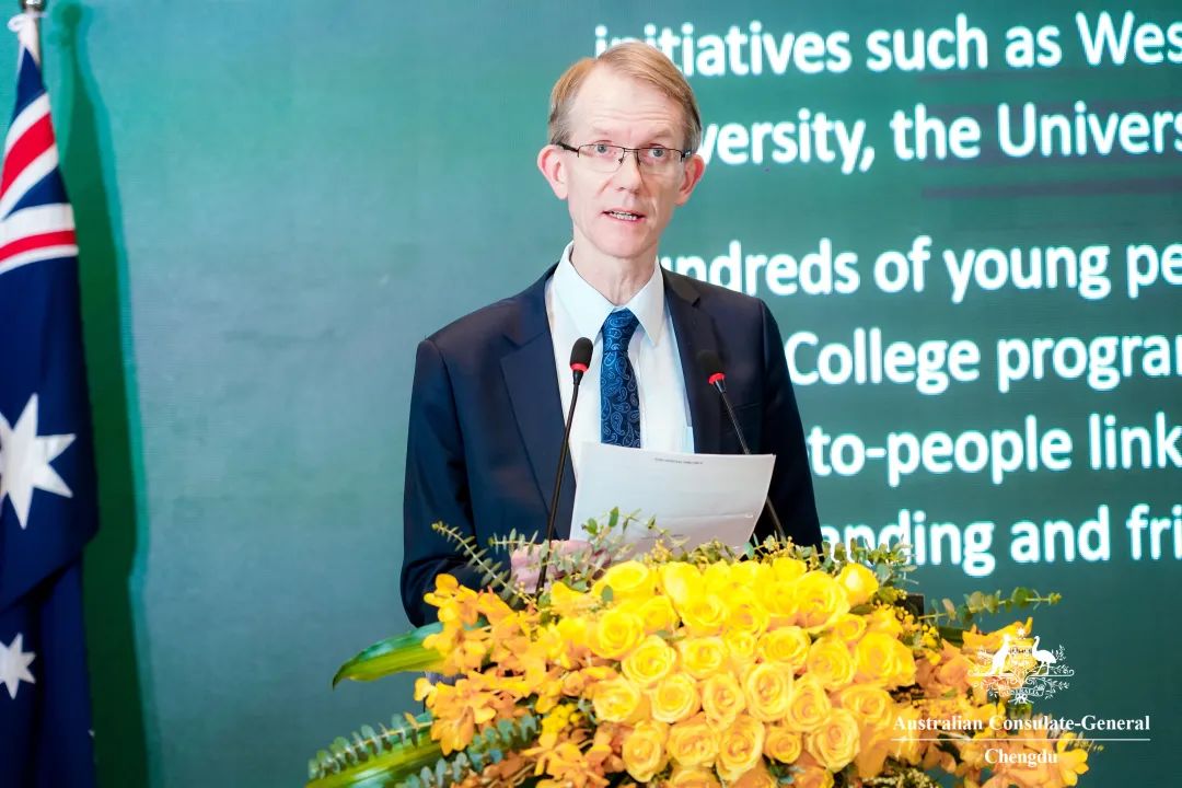 Graham Fletcher阁下发表致辞,回顾了澳大利亚与中国自1941年起建立的重要伙伴关系。他表示,中澳双方是值得信赖的合作伙伴,中澳关系非常重要,具有经济上的互补性,即使在疫情对国际交往产生极大阻碍的情况下,中澳贸易往来依然有强大活力,表达了对中澳关系光明未来的期待。