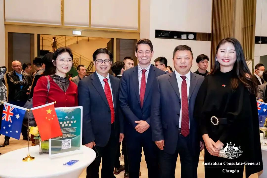 澳大利亚贸易投资委员会商务领事、商务和投资专员(教育)Rhett Miller(左三),澳大利亚贸易投资委员会商务官员倪婷(右一)