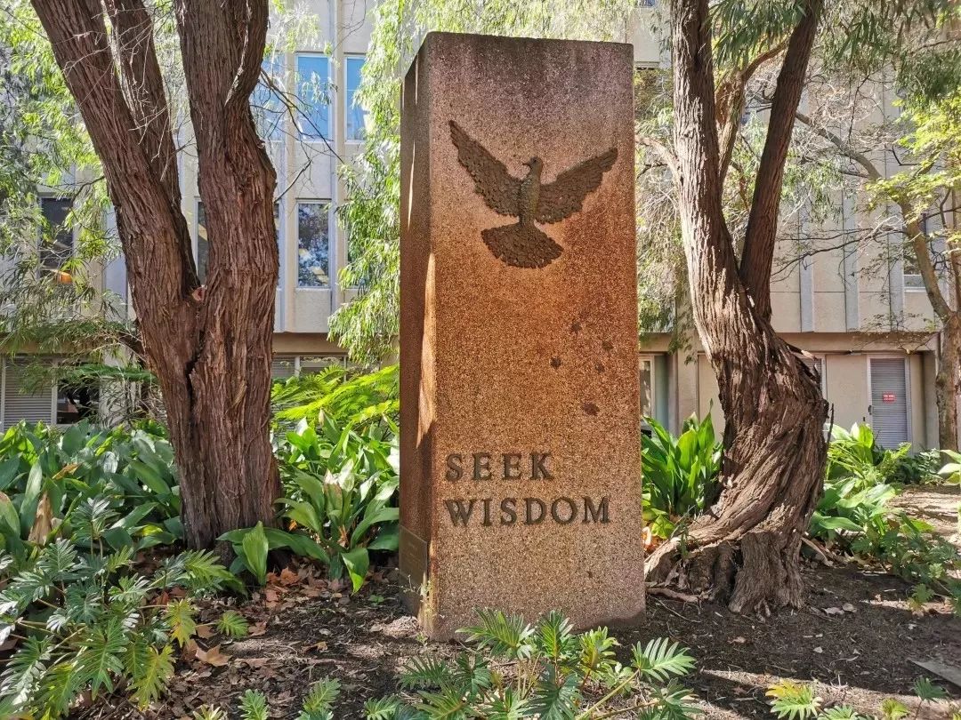 抵达西澳大学的标志性建筑,蓝黄主色的钟盘,黑色罗马数字的时间,庄重而威严。