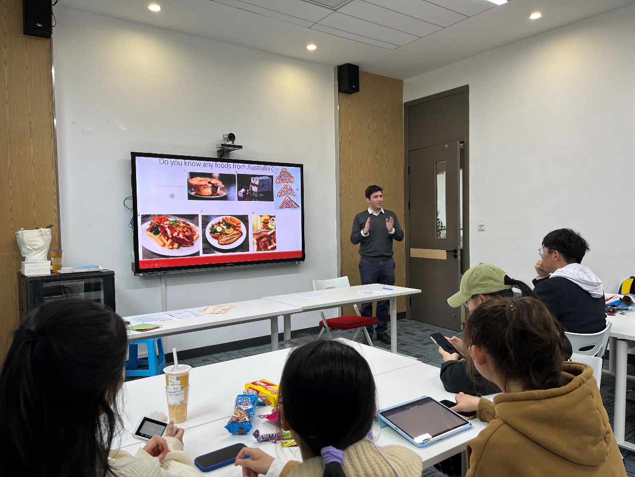 4月1日,betway88西汉姆网页于综合楼2212顺利开展了以“Chinese and Australian Food Sharing”为主题的英语角活动。本次活动采用线上线下相结合的方式,邀请了外教Luke和英语老师Irene与15名学生代表参加线下活动,超千名英语爱好者参加线上直播,该活动由2021级食品安全与质量学生李萝蕤主持。