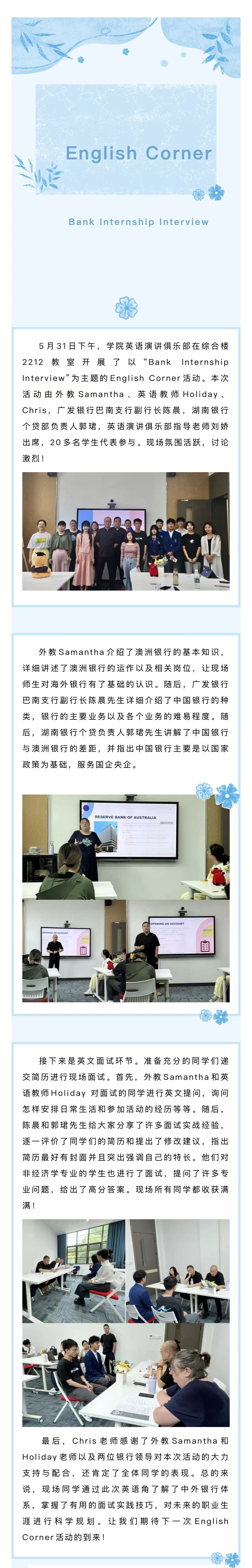 【西塔英语角(Westa English Corner)】第15期:Bank Internship Interview