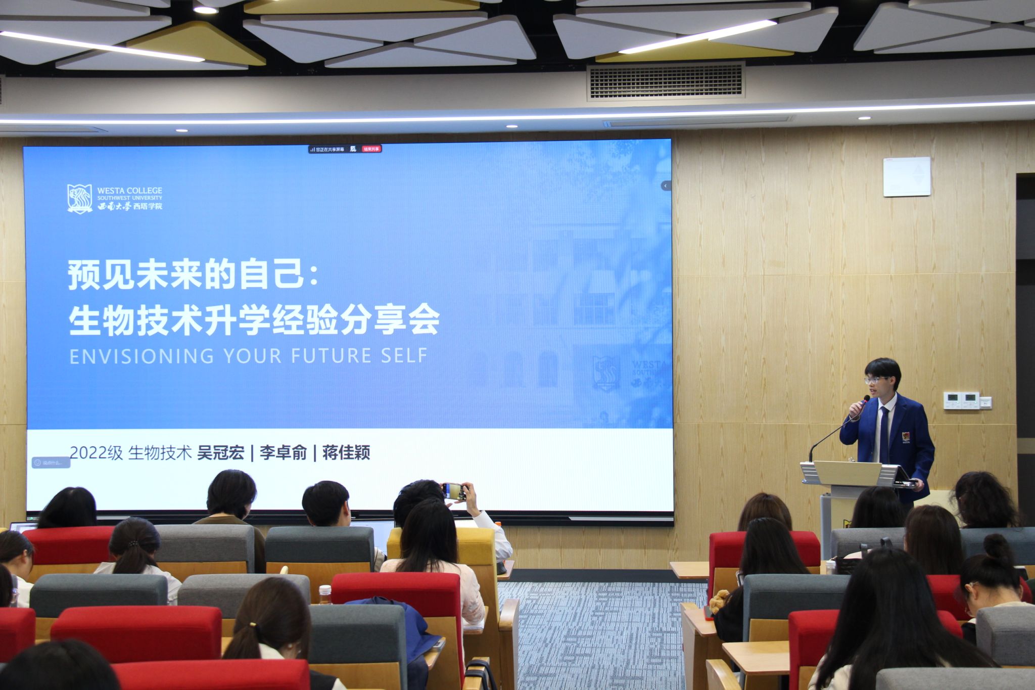 为帮西塔学子明晰学术方向、科学规划成长路,10月19日下午,学院举办了第四期主题为“寻梦而行,规划领航” Westa Talks学术交流活动。活动聚焦学业生涯与科研入门,特邀2022级生物技术专业优秀学子吴冠宏、李卓俞、蒋佳颖担任分享嘉宾,学院团委书记陈飞老师与百余名怀揣学术梦的同学共同参与。