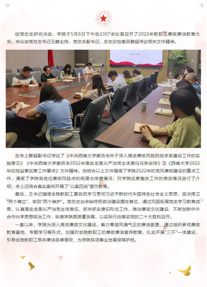 学院召开2022年廉政廉洁教育大会