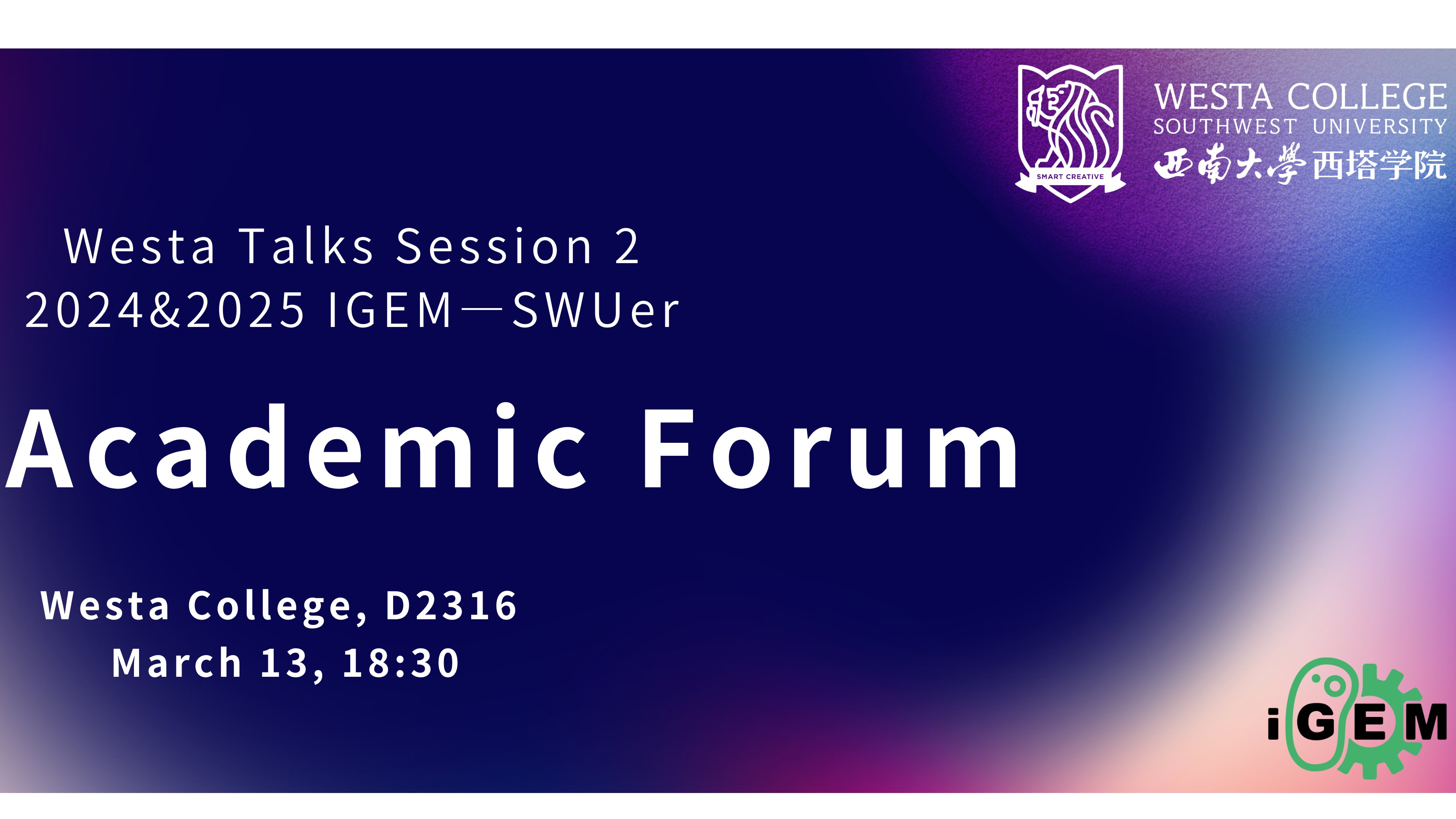 Westa Talks(第2期)活动预告:2024iGEM 团队交流会
