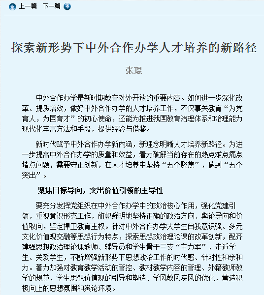 探索新形势下中外合作办学人才培养的新路径——我院教师张琨在《中国教育报》上发表署名文章