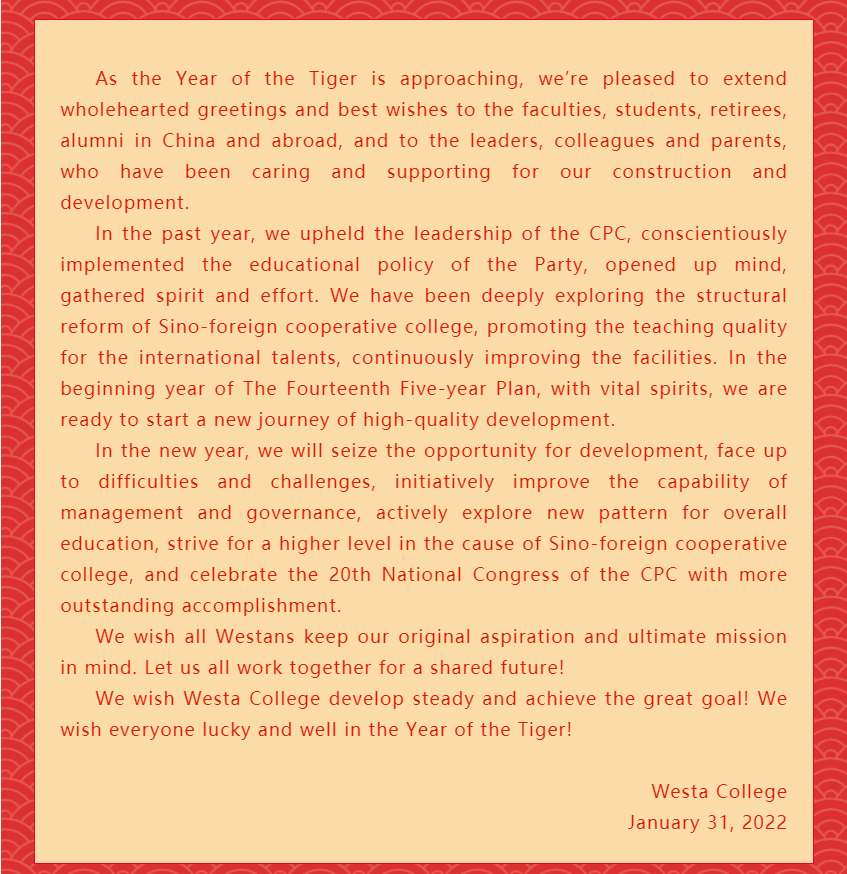 betway88西汉姆网页2022年新春贺词 | 2022 Lunar New Year Address from Westa College