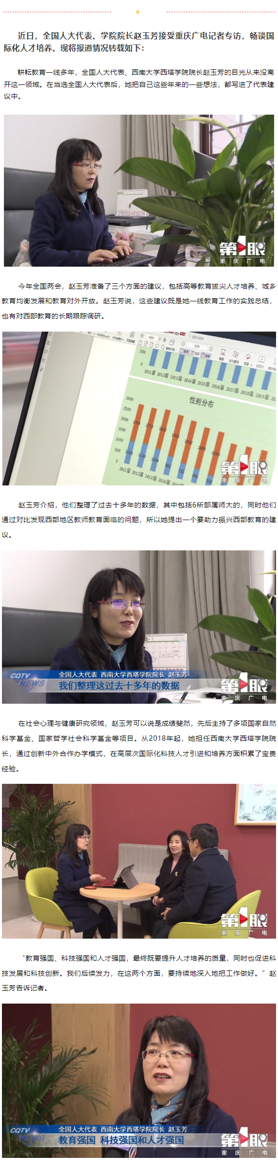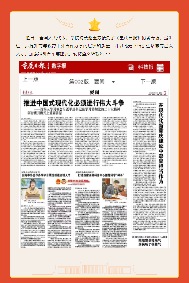 全国人大代表、学院院长赵玉芳接受《重庆日报》记者专访